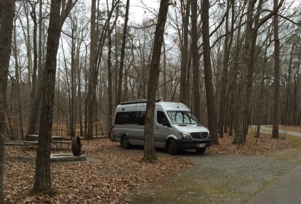 I arrived in Cary, NC, outside of Raleigh, without further incident. I was pleased to see that the campground I’d selected, William B. Umstead State Park, was very pretty and lightly populated: